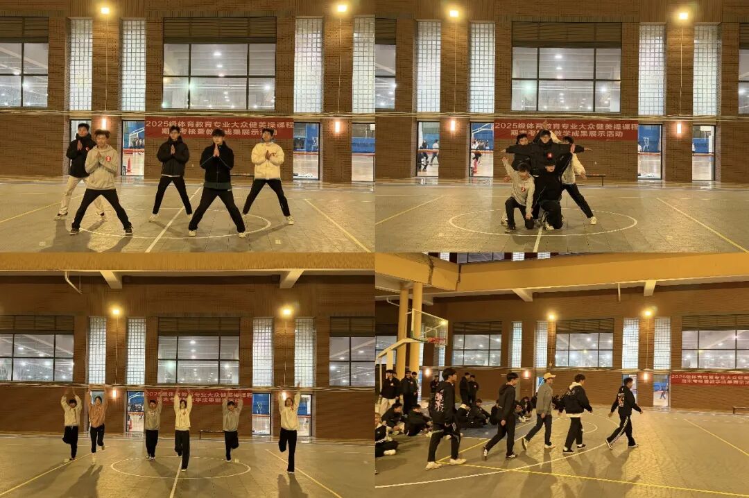 本次考核严格践行“教考分离”教学改革要求,特邀校外健美操专业裁判联合考评组,从动作规范性、艺术表现力、团队协作度等多维度进行客观评分,确保考核结果的公平性与专业性。考核现场化为活力赛场,2025级学子伴随着AI生成的动感旋律依次登场,在自编动作展示中精准呈现肢体控制能力,并借助队形设计软件完成富有创意的编排,巧妙融入灵活多变的队形组合与清晰生动的主题表达。整齐的动作、饱满的热情、灵动的创意,不仅展现了课程学习成果,更体现了学生在AI技术赋能下自主设计、融合创新的实践能力,生动诠释了体育教育专业学子紧跟时代、勇于探索的专业素养与进取精神。